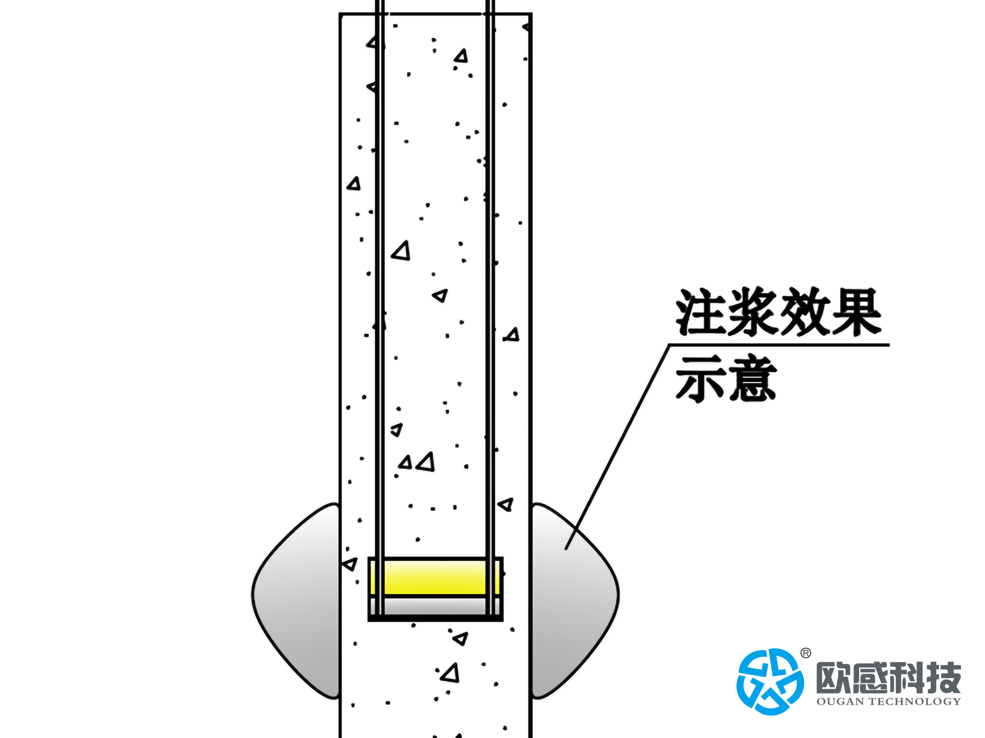 自平衡測(cè)試結(jié)束后,可在荷載箱腔體內(nèi)壓注水泥漿/歐感專用注漿料,實(shí)現(xiàn)荷載箱100%的內(nèi)注漿效果,使荷載箱空腔內(nèi)充滿水泥漿液保證荷載箱鎖定不再產(chǎn)生行程??稍诤奢d箱腔體外壓注水泥漿/歐感專用注漿料填充荷載箱斷開(kāi)面保證樁身完整性,漿液可沿樁周上下滲透,形成擴(kuò)大頭提升該位置的承載力;根據(jù)住建部規(guī)范JGJ/T403-2017注漿不僅填滿荷載箱處混凝土的縫隙,使該處樁身強(qiáng)度不低于試驗(yàn)前,而且還相當(dāng)于樁側(cè)注漿,使荷載箱以上10米左右范圍內(nèi)的樁身側(cè)摩阻力提供40%-80%。也就是說(shuō),試驗(yàn)后的樁經(jīng)注漿處理后承載力比原來(lái)要高。