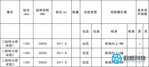 國家重點(diǎn)鐵路項(xiàng)目,歐感有幸參與一標(biāo)特大橋試樁1/2/3、二標(biāo)特大橋試樁1/2/3、三標(biāo)特大橋試樁1/2/3,共9根樁的承載力檢測(cè)并結(jié)合鋼筋計(jì)及土壓力盒,樁徑1250mm,極限承載力30000KN,這3座大橋各相隔百公里,歐感同時(shí)派遣3名現(xiàn)場(chǎng)服務(wù)工程師,歷時(shí)1個(gè)半月,順利協(xié)助客戶單位完成自平衡荷載箱安裝及數(shù)據(jù)檢測(cè)。