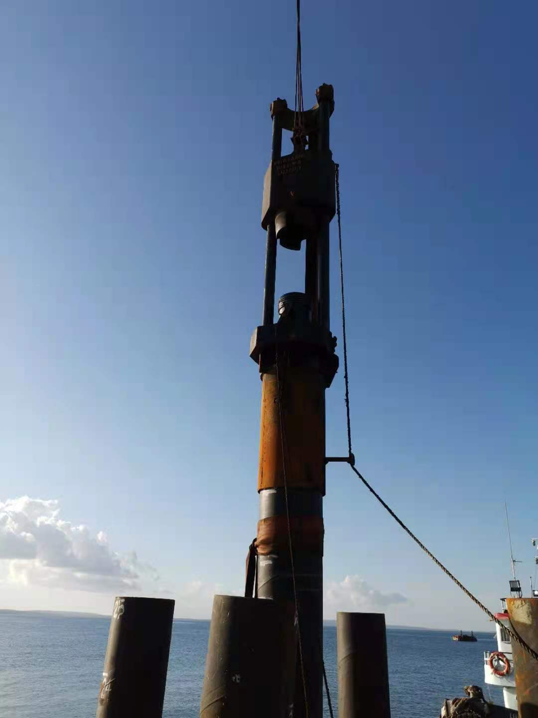 3、本次鋼管樁分5節(jié),分段下籠,位移管線的對接需結實、精密。